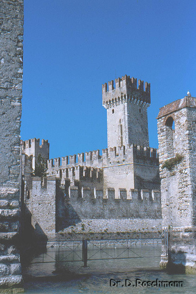 Da auf dem Schiff erst gegen Mittag eine kleine Bar eröffnet worden ist, ist in Sirmione dann Mittagessen angesagt gewesen, wobei sich die Gäste auf die vielen Lokale verteilt haben. Gemäß meinen Vorschlägen ist die Stadt besichtigt worden, zu Fuß oder mit dem in den südlichen Urlaubsorten üblichen Trenino, einer „Straßenbahn auf Gummirädern“, die zu den Grotten des Catull fährt. Auch die gewaltige Skaligerburg hat Gäste angelockt.