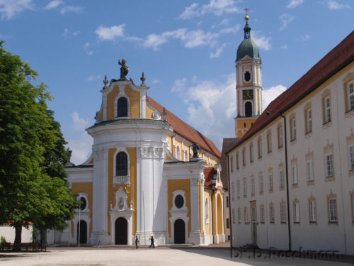 Konventsgebäude und die in üppigem Barock ausgestattete Klosterkirche