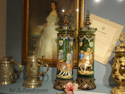 Bierkrüge aus fünf Jahrhunderten können wir besichtigen und anschließend