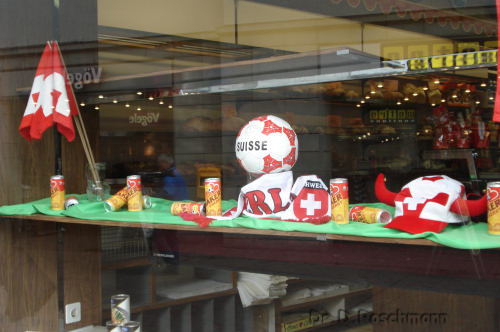 Auslagen von Geschäften auf dieses fußballerische Großereignis hin.