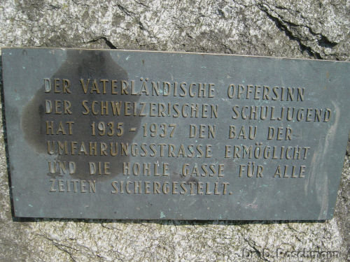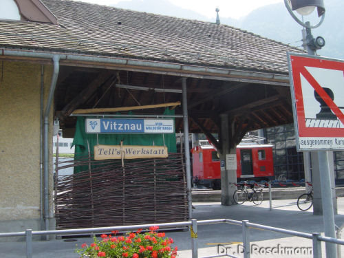 „Durch diese hohle Gasse muß er kommen,…“ heißt es in Schillers Drama „Wilhelm Tell“. Dabei ist es für uns doch völlig gleichgültig, ob bzw. wann Wilhelm Tell überhaupt gelebt hat oder ob er erst durch Schillers Drama in der uns überlieferten Gestalt in die Geschichte eingetreten ist. Wir bummeln durch die „Hohle Gasse“, die nach Anlegung einer Umfahrungsstraße in den Dreißigerjahren des 2o. Jahrhunderts durch Anbringen von gewaltigen Steinquadern rückgebaut worden ist und die zur Tellskapelle emporführt. Es ist, als ob jeden Augenblick hinter einem Baum der Meisterschütze hervortreten könnte, um Rache am Landvogt Gessler zu nehmen, über dessen Geheiß er ja in Altdorf den Apfel vom Kopf seines Sohnes hatte schießen müssen. Da aber auch Helden kein ewiges Leben beschieden ist, ist Tells Tod – er ist bei der Rettung eines Knaben aus einem Hochwasser führenden Fluß ums Leben gekommen – in der Tellskapelle am Ende der Hohlen Gasse dargestellt. Weiter geht die Fahrt dem Nordufers des Vierwaldstätter Sees