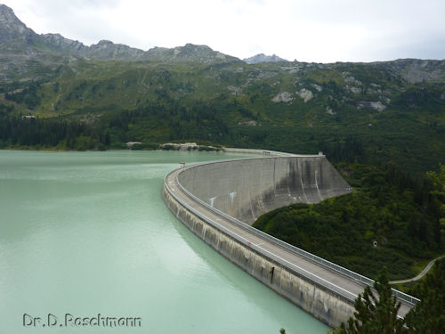 bzw. der Staumauer entlang und können die prachtvolle Aussicht auf die