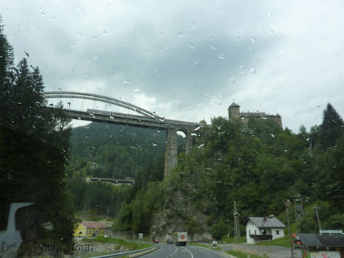 einem Schloß auf. Aus dem Bus heraus halte ich die Trisannabrücke mit