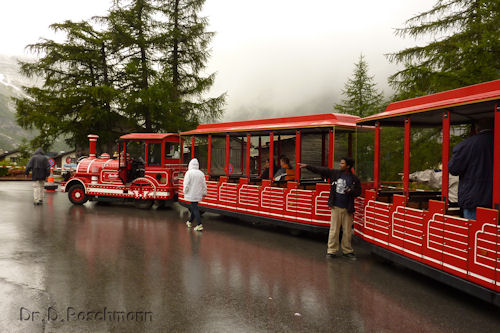 Erstmals bei meinen Reisen mit dem ‚langsamsten Schnellzug der Welt’ hat der Ablauf der Reise nicht der Programmvorschau entsprochen. Aufgrund eines Betriebsunfalles ist am Tag unserer beabsichtigten Fahrt mit diesem Zug die Trasse blockiert gewesen, sodaß wir eine verkürzte Strecke haben fahren müssen. Zuvor aber in Zermatt eine derartige Wetterlage, daß wir nicht - wie beabsichtigt - alle zum Gornergrat haben hochfahren können. Trotzdem ist es eine schöne und interessante Reise gewesen, an die ich gerne zurückdenke. Ich fasse sie im folgenden Bildbericht zusammen. Die Reise