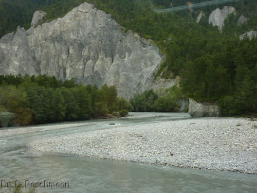 Vorderrheintal geht es abwärts Richtung Chur. Die Landschaft ist so