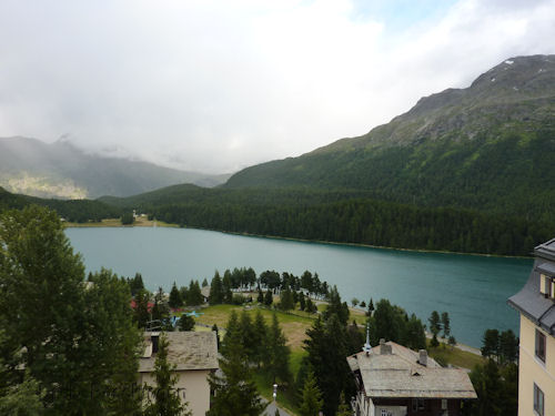 und vor allem auf den St. Moritzer See hinunterschauen.