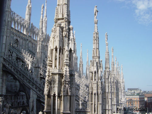 Am vierten Tag heißt es dann Abschied nehmen von der Ihnen bestimmt vertraut gewordenen Gegend, vom Hotel und seinem schönen Park. Es steht aber noch ein Erlebnis besonderer Art bevor: Der Besuch von Mailand! Fast durchgehend fahren Sie auf der Autobahn und erreichen schon bald die Hauptstadt der Lombardei. Da dieser Reisetag ein Sonntag ist, gibt es vor und in Mailand keine Verkehrsprobleme; wir können gemütlich vorbei an der ‚Scala’ und durch die Galerie König Viktor Emanuel II. auf den Domplatz spazieren. Der Anblick der größten gotischen Kirche Italiens wird Sie begeistern. Und dann können Sie etwas unternehmen, was bei kaum einer anderen Kirche möglich ist: Sie können entweder zu Fuß das Dach erklimmen oder mit dem Lift hochfahren und dann auf den ‚Terrazzi’ herumspazieren.