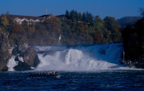 Am letzten Morgen hat es dann früh aufstehen geheißen – durch die Zeitumstellung aber gar nicht so schlimm. Die lange Heimreise ist bevorgestanden. Während des Mittagessens haben wir noch die Vulkankegel im Hegau bewundern können, während am Nachmittag als grandioser Abschluß das Naturschauspiel des Rheinfalles von Schaffhausen am Programm gestanden ist. Die meisten Gäste sind mit mir auf dem Schiff zum Felsen in der Flußmitte gefahren, auf welchem die Kantone Schaffhausen und Zürich zusammenstoßen. Der Blick auf die gischtenden Wassermassen hat die zwar kurze, aber doch aufregende Schiffahrt gelohnt.