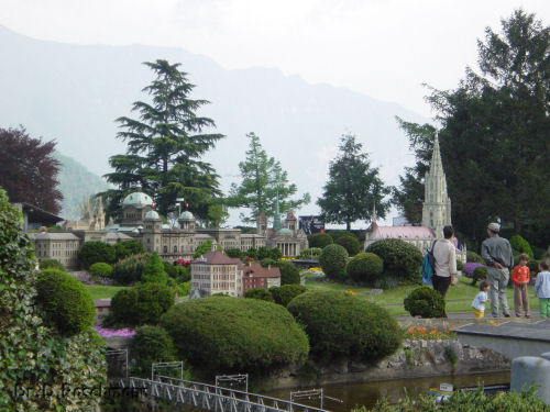 Wir nützen die frühe Ankunft aus, um einen Rundgang durch die ganze Schweiz zu unternehmen. Wie das? In Swissminiatur in Melide am Luganer See werden die malerischsten Punkte der Schweiz, ihre Städte und Dörfer, ihre Denkmäler und Verkehrsmittel, aber auch ihre Landschaft in 25-facher Verkleinerung gezeigt. Kleinwüchsige Pflanzen, vor allem Bonsaibäumchen, säumen den Weg, die Schiffe auf dem Wasser sind nicht viel größer als die mit ihnen um die Wette schwimmenden Enten. Ein ganzes Land kann in einer Stunde bewundert werden.