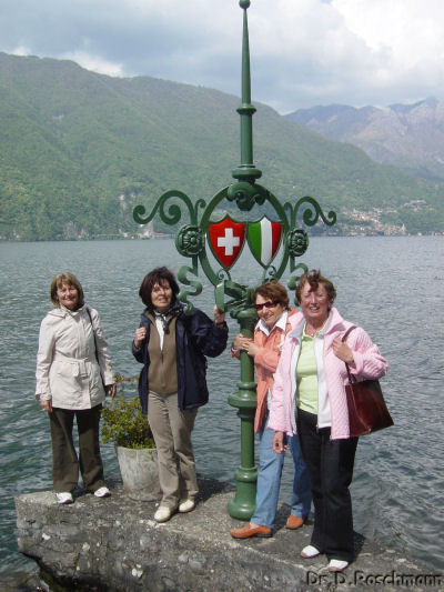Dann freuen wir uns auf eine gemütliche Schiffahrt, diesmal mit einem Linienschiff. Über Gandria fahren wir zum Schweizerischen Zollmuseum, wo wir nicht nur interessante Einblicke in die ‚Welt des Schmuggelns’ bekommen sondern auch viel über die Zeit erfahren, als rund um die neutrale Schweiz die großen Kriege des 2o. Jahrhunderts getobt haben. Da gleich neben dem Museum – das Gebäude hat früher als Zollhaus gedient – die Grenze zu Italien verläuft, ist eine Aufnahme der Grenzsituation mit ‚Grenzgängerinnen’ geradezu Pflicht.