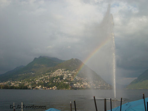 Aber auch hier heißt es Abschied nehmen, müssen wir doch noch um den Lago Maggiore herumfahren und dann – nach einem ganz kurzen Blick auf den Comer See und die Stadt Como – bei Chiasso zurück in die Schweiz. Bei Melide überqueren wir auf Damm und Brücke den Luganer See und sehen schon bald die Fontäne in der kleinen Bucht unweit unseres Hotels.