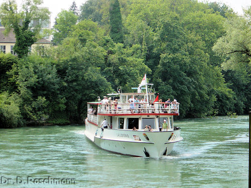 Nahe dem deutschen Ufer dann rheinabwärts bis zur ‚deutschen Grenzstadt Rheinfelden’, wo wir wieder den Strom überqueren, um von der ‚schweizerischen Grenzstadt Rheinfelden’ dann mit der ‚MS Lällekönig’ der Basler Personenschiffahrt rheinabwärts bis Basel zu fahren. Vor der Einschiffung aber noch ein ausgedehnter Stadtbummel, bei welchem das mittelalterliche Stadtbild so richtig genossen wird.
