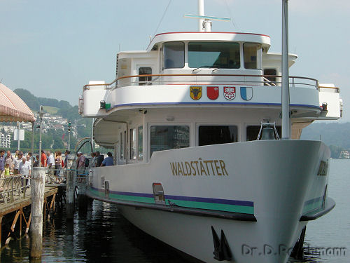 Ein ausgedehnter Spaziergang durch Luzern folgt; viele interessante Details werden entdeckt, die einzeln anzuführen zu weit gehen würde. Dann Punkt 12 Uhr die Einschiffung auf das Mittagsschiff, die ‚MS Waldstätter’, für die Fahrt nach Vitznau und zurück.